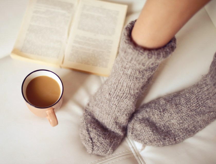 female legs in woolen socks close up
