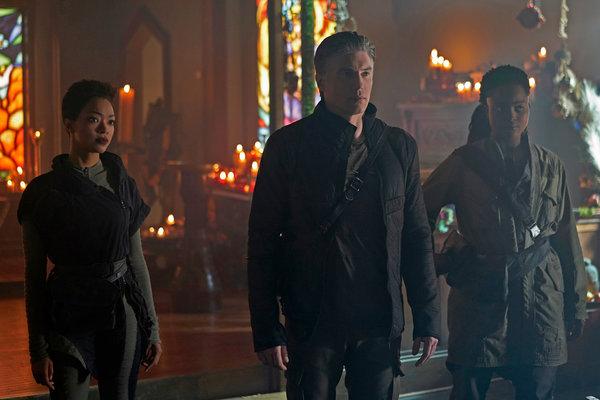 In fact the exploration of the church was my favourite scene. Not only was it able to give us an idea of what the colony was going to be like, it provided a teaching moment. Michael goes to read the scripture and Pike informs her just to look at the windows before explaining that the stained glass was there for that purpose.